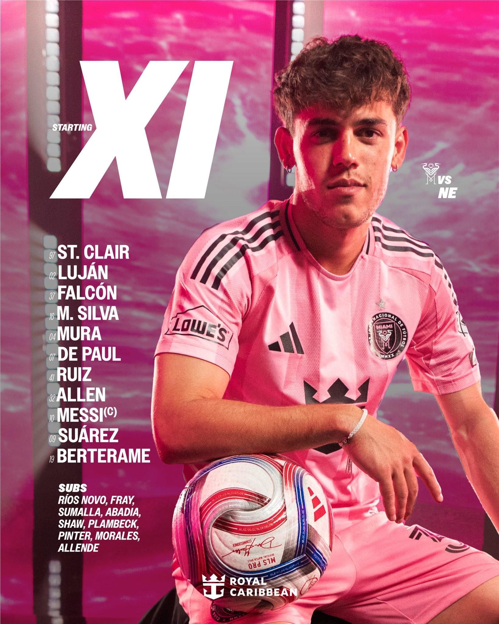 北京时间4月26日7点30分,美职联常规赛,迈阿密国际对阵新英格兰革命,赛前公布首发名单