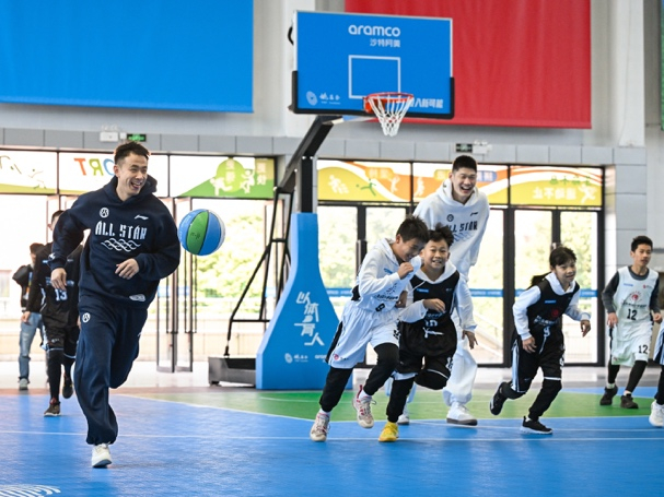 3月7日,沙特阿美、姚基金与中国男子篮球职业联赛(CBA)在浙江诸暨海亮融爱学园正式启用全新改造的“投入新可能”公益球场。